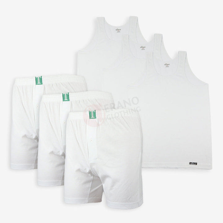 TOUBKAL Lot 3 Caleçons-Débardeurs Blanc 100% Coton